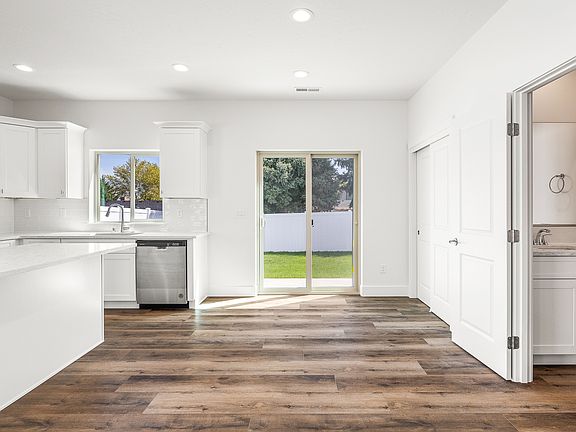 Well-appointed kitchenCentral islandSliding glass doorsCurb appealBackyard for indoor-outdoor livingDining areaAmple storage