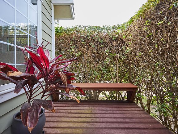 This unique property includes 2 homes with "FINISHING TOUCHES" by custom cabinet designer! Enter front home through a secluded deck with built-in benches surrounded by a stunning wall made of green vines. Spacious living room with vaulted ceiling, recessed lighting & hardwood floors. Efficiently designed kitchen with custom cabinets, built-in refrigerator, dishwasher, & unique counter that opens to a table. Main bedrm is enhanced with built-in desk with ample drawers & loft sleeping area. Custom pocket door leads to a full bathrm. Between the 2 homes, enjoy the secluded wood deck with spa & triangular shade canopies. Enter the 1st level of back house and you are greeted with a lovely sitting area & floor to ceiling built-in wood cabinets. Downstairs offers a private suite with built-in bamboo closets, custom built-in desk & attached bathrm. Creative use of bamboo on the wall behind granite counter top/sink with accent lighting under the free-standing bamboo cabinets gives the bathrm a special elegance. Built-in closets & drawers provide extra storage in the roomy laundry room. Finished concrete floors are throughout the downstairs. Upstairs offers kitchen with built-in eating area & large picture windows overlooking the tropical backyard. Sunshine filled master bedrm adjoins a custom bathrm. Completely private, lushly landscaped backyard. Secluded covered deck in rear of yard. Extras include dual pane windows, outside shower, laundry chute & driveway with automatic gate.