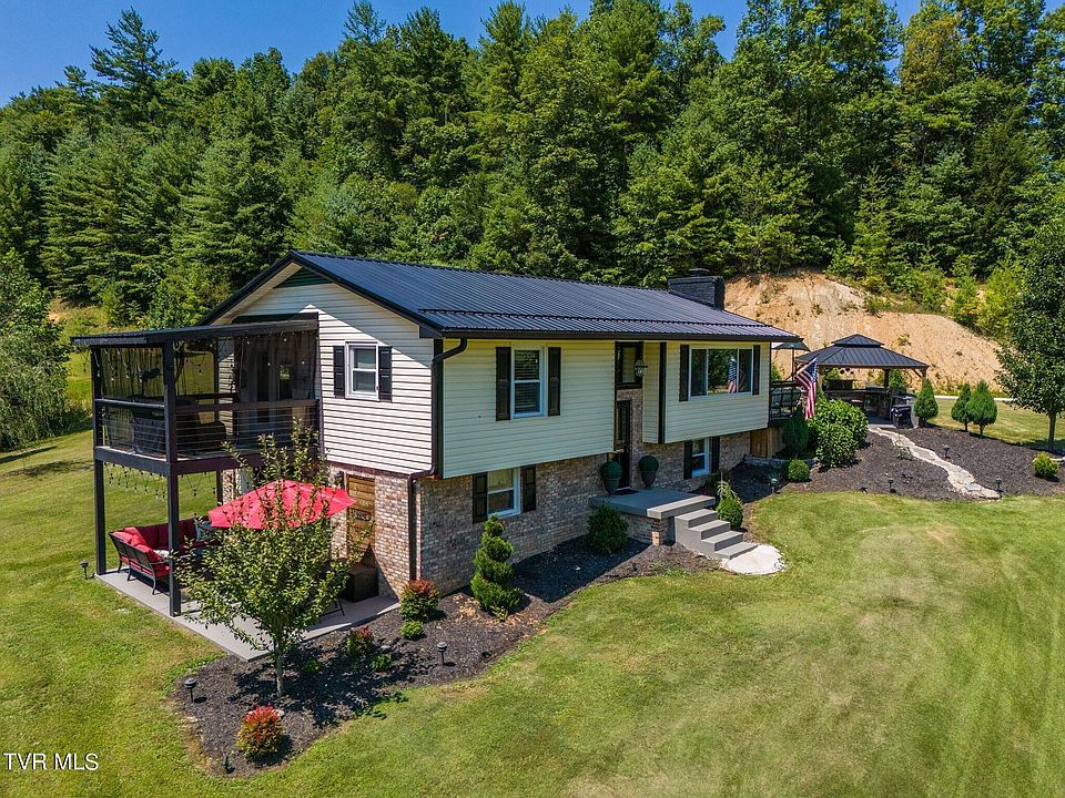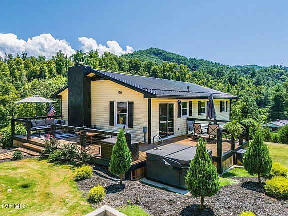 Discover an extraordinary retreat nestled in the heart of East Tennessee's majestic mountains! With stunning views, top-notch renovations, and incredible potential as a premier Airbnb destination, this property is truly a rare find. Completely renovated and set on nearly 12 pristine acres, this home offers an unparalleled blend of seclusion and convenience. Just 40 mins from Asheville, NC, and a short drive to ski slopes, whitewater rafting, the Appalachian Trail, and local lakes, this property is also within 30 minutes of Johnson City, TN, and all the Tri-Cities area's amazing amenities. Bristol Motor Speedway and the Hard Rock Casino are easily accessible from this haven located less than 5 mins from I-26. The residence boasts breathtaking views and a wrap-around deck perfect for soaking in the serenity. Enjoy year-round relaxation in the sunken hot tub or entertain guests with the well-equipped outdoor kitchen. The detached 3-bay garage and concrete driveway offer ample parking and storage space. Inside, the stunning open floorplan features Canadian maple flooring that exudes warmth and elegance. The main level includes a spacious living area that seamlessly flows into the kitchen, ideal for gatherings. The expansive master suite is a private sanctuary with an adjoining covered deck, while the luxurious bath features a tiled walk-in shower, soaking tub, and elegant vessel sink. The versatile lower-level BR with walkout access offers endless possibilities, easily adaptable as a den, game room, gym, or spacious guest quarters. Need a home office? The available fiber-optic internet and excellent cellular service will serve your needs. Additional bedrooms could easily be created by configuring the available open spaces to your specifications. Other highlights include a 3-year-old metal roof for durability and peace of mind. Embrace the tranquility and adventure that East Tennessee offers. Buyer and buyer's agent to verify sq/footage and all information provided.