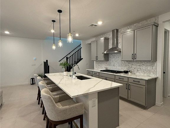 Modern luxury awaits in Summerlin West's newest gated townhome community! Be the first to live in this upgraded, partially furnished (furniture optional) 3-bedroom, 2.5-bath home. The kitchen features a large quartz island, custom backsplash, shaker cabinets with black hardware, new stainless Whirlpool appliances, and a walk-in pantry. Sliders open to a covered paver patio that extends the living area and fills it with natural light. The primary suite offers dual walk-in closets, double vanities, a spacious shower, and a covered balcony with mountain and Strip views. Upstairs includes two additional bedrooms, a full bath, laundry room, and loft ideal for work or relaxation. Monument offers gated access, a private pool, greenspace, and stunning views of the Las Madres Mountains. Minutes from top-rated schools, fine dining, shopping, and entertainment at Red Rock Resort, Downtown Summerlin, Boca Park, and Tivoli. This is a must see!!