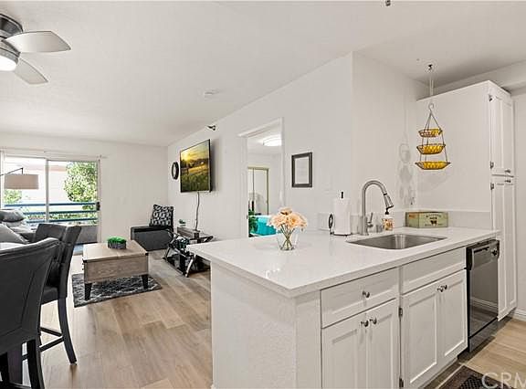 Welcome to this beautifully remodeled and well kept home in the Regent Terrace 55+ Senior Community! This lovely 1 bedroom, 1 bath home is located in the heart of the highly desirable Downey area. The remodeled kitchen offers quartz countertops, custom white cabinets, newer built-in stove, microwave and dishwasher; as well as new laminate wood flooring throughout. Adjacent to the kitchen is the dining area, living room and sliding glass door with access to private patio balcony. Home also offers inside laundry with washer and dryer included for extra convenience! The Regent Community amenities include secured entry to building, an assigned parking space in secured parking garage, elevator, extra storage, clubhouse/recreation rooms, and spacious outside patio areas. This Complex is located within Easy access to 5 Fwy, 605 Fwy, and 91 Fwy and walking distance to shopping centers, restaurants, grocery stores, pharmacy, and hospital. The HOA includes trash, water and insurance. This home has it ALL; Dont miss out on this hidden Gem!