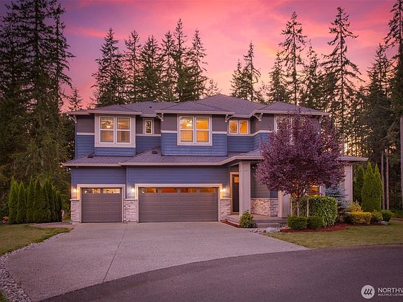 This Lake Stevens home is tucked away on a quiet cul-de-sac in the sought-after Glenmore neighborhood! Set on a large lot backing to lush green space, the private backyard becomes your personal retreat ideal for year-round entertaining. Step inside to a bright entryway and discover a flexible main floor guest suite with a private bath. The open-concept main living area flows effortlessly into the outdoors. At the heart of the home, the kitchen shines with a generous center island. Upstairs, the expansive primary offers views of the peaceful backyard & five-piece en-suite bath. Upstairs includes a 2nd primary bedroom, two additional bedrooms, a bathroom, & a versatile bonus room. Attached three-car garage & extra parking for a RV or a boat!