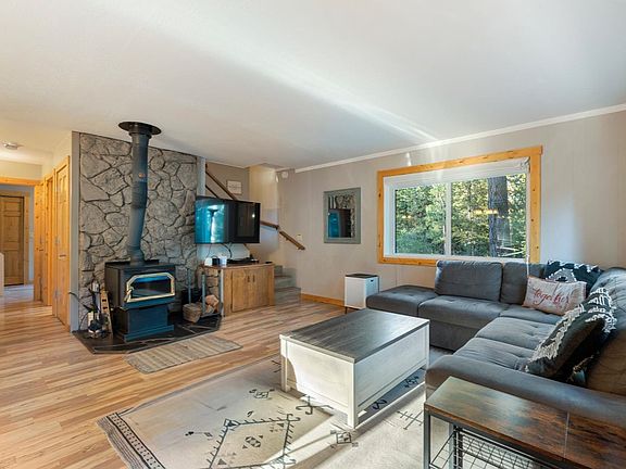 Nestled on a quiet street in the heart of Tahoe Donner, this charming home offers a true nature lover’s paradise. With hiking and biking trails right outside your door, you can explore the beauty of Tahoe Donner at your leisure. This cozy, well-maintained house features everything you need for comfortable living, including a free-standing wood-burning stove, updated flooring, heated bathroom floors, and two spacious decks perfect for outdoor relaxation. With a bedroom and full bath downstairs and two bedrooms and full bath upstairs, there is plenty of space for families and for accommodating guests. There are walk-in closets in the upstairs bedrooms, tons of cabinet space in the kitchen, built-in shelving, and plenty of storage throughout the house. The home has modern amenities such as a Nest thermostat and Ring security system and doorbell. Refrigerator, washer and dryer have all been updated within the last 2 years. The oversized .42-acre gently sloped corner lot provides an excellent opportunity to build that ADU you’ve always dreamed of. Enjoy the sounds of nature and shade from your trees in the summer laying in a hammock or create your own sledding paths in the winter. Plus, you’re just minutes away from all the Tahoe Donner amenities. Take the Tahoe Donner Nature Loop Trail for a scenic half-mile walk to the Trout Creek Recreation Center—you’ll get there quicker than driving! Or follow the trail to the Northwoods Clubhouse, where you can enjoy a pie from Pizza on the Hill, take a dip in the pool, or hit the tennis courts right next door. This home truly offers the best of Tahoe Donner living. The brand new metal roof was installed in 2023 and the home is ready for you to move-in!
