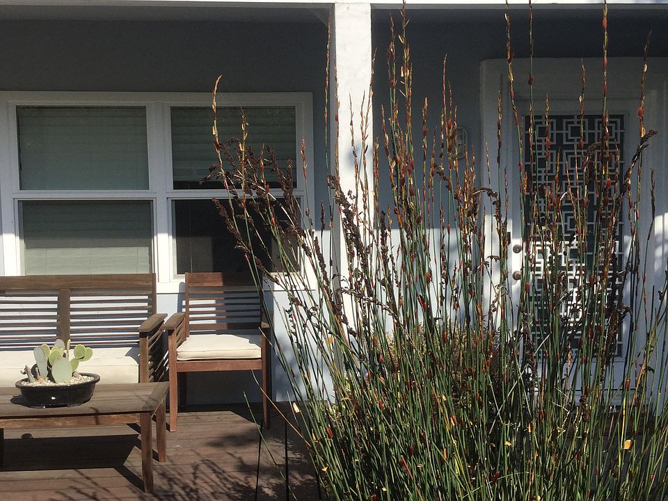 Stunningly peaceful and private compound must be seen in person to believe. This incredible open floor plan has inviting views of the spectacularly landscaped yard from virtually every location in the home. A custom skylight in the main living area offers natural light from the 14' high ceilings. All 3 bedrooms are light filled, with the Master Bedroom featuring it's own skylight, as well as a tremendous his & her's walk in closet. The true chefs kitchen is highlighted by stainless appliances, maple cabinets, stone counters, travertine floors. Both large bathrooms have been recently renovated with the high end fixtures & tile.The professionally designed garden is an entertainers dream, and extremely family friendly. This charming home sits on a very quiet part of "Little Culver Blvd". Recent updates include newer Central A/C & Heat & Energy Star windows. This home will not last...