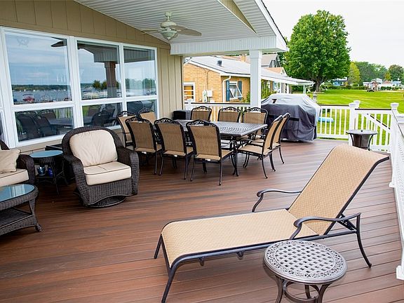 Immerse yourself in Lake life! Absolutely FABULOUS view of Conneaut Lake and boat dock just feet from your sprawling front deck, this gorgeous 4 bed, 2 bath year-round home has been meticulously remodeled and is ready to move in and enjoy. Fixtures, trim, flooring, kitchen, baths, soffit/fascia, and more have been updated. Lending itself to relaxing or entertaining, this hidden lakeside gem has high functionality and a very friendly flow. The gathering space boasts vaulted ceilings, a handsome brick fireplace, and a mesmerizing window wall facing the lake. Spacious kitchen features: granite tops, an island w/ storage, cabinets w/ leaded glass accents, SS appliances, slow-close drawers and more. Garage has cabinets throughout and storage above. Put this one on your list, you will not be disappointed.