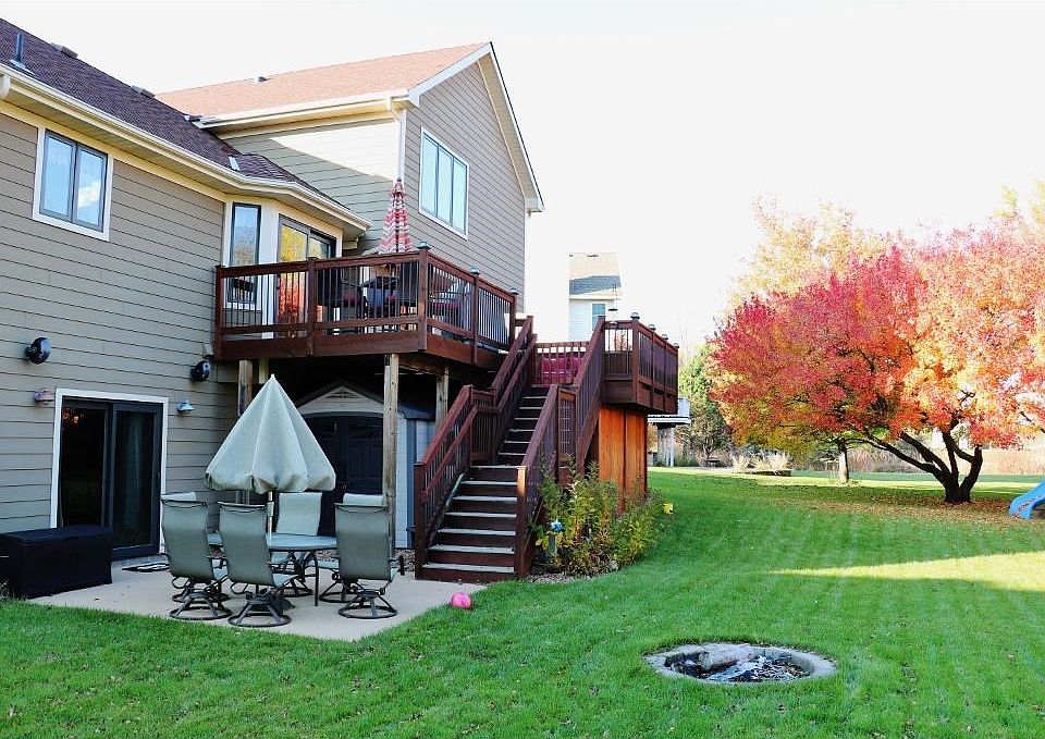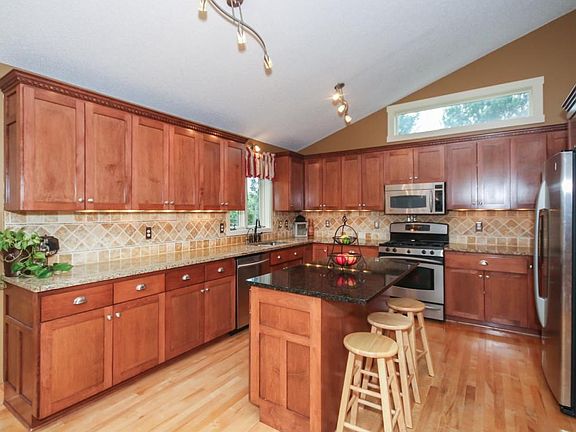 THIS IS the house you've been waiting for. Only available due to relo. Quiet treed cul-de-sac lot backing to woods, & pond. Champlin Schools. 1 house away from bike/walking paths winding thru Elm Creek Park. Full of amenities- Wood floors,Tile floors & Backsplash, Granite, Kitchen Island, Whole house audio system, Multi level deck w/ w-o from dining area & FR, w-o LL to large patio, 2 laundries (1 in master closet), Heated man cave garage, Vaulted master, Tile baths, Projector w/screen, Wet bar.