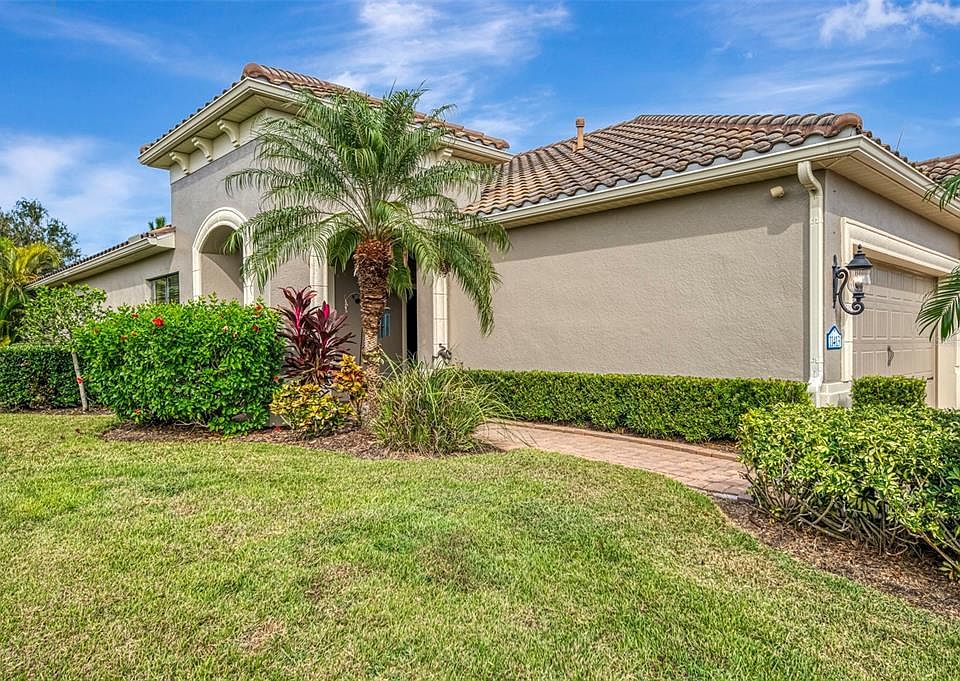 ACTIVE HIGH END RESORT LIVING for absolutely all ages coupled with easy LOCK-AND-LEAVE maintenance, even the hurricane shutters are neatly stacked in the attached 2 car garage. All this in a GATED community, with a fully staffed management office on site. Even the LIFE STYLE DIRECTOR is full time, and currently keeps a calendar of events, classes, workshops and entertainment to satisfy the social, wellness and the enrichment goals of residents of all ages. Everything about this Development is as its name suggests, GRAND. But this house is in the COVETED NEIGHBORHOOD 1, offering a quiet oasis from the “Grand” experience. Your LANAI backs up to a NATURE PRESERVE for quiet privacy. A TRANQUIL SWIM or a quick SPA dip is a short walk to your own clubhouse. Residents of this area enjoy “Thirsty Thursdays” and regular cookouts potentially fostering a “blue zone” experience. And Neighborhood 1 has its own onsite manager to make sure your experience is truly turnkey. This particular house offers a NEUTRAL PALLETTE interior with a homogeneous tile floor and light paint under the high open ceilings. The den can be closed off with the existing french doors. It is offered “turn key” with a coveted GAS STOVE! Venturing back to the Grand experience is convenient as SIDEWALKS are in place on both sides of the streets. I see people walking, jogging, riding bikes and enjoying conversations. Miles of WALKING TRAILS are nestled in ACRES of PRESERVES connecting the many parks and amenities. The GRAND PALM PRIMARY CLUBHOUSE and Amenity Collection overlooks a LAKE with a bridge to ADVENTURE ISLAND offering the kids ample enticement to leave the electronics behind. It offers a FORT, two FISHING PIERS, and a KAYAK launch with storage. If that does not wear the little ones out, there is a playground, WATER PARK and huge pool with a LONG WATER SLIDE. Still have some energy? Treat your PETS to their very own gated playground. THE SOCIAL CLUB offers the GRAND BALLROOM and huge kitchen overlooking yet another CABANA CIRCLED BEACH ENTRY POOL AND SPA. SPORTS Include: Pickleball, Tennis, Bocce Ball, Basketball, Volleyball courts. WELLNESS support is accomplished with State-of-the-art Fitness Center, LAP POOLS, Spas and classes. NATURE IS HONORED with miles of picturesque walking and biking TRAILS throughout the community’s NATURAL PRESERVES AND LAKES. SOCIAL LIFE is encouraged by, Pools, Pavilion, Picnic tables, barbecue stations, Ballroom, Game Room, Library, huge kitchen and SCHEDULED EVENTS. The community is in WELLEN PARK which is home to the newly completed Cool Today Training Stadium of the Atlanta Braves. Here, in addition to baseball you can enjoy concerts sometimes accompanied by fireworks. Grand Palm is also very close to several BEACHES and the famous SHARKS TOOTH HUNTING and FESTIVALS in downtown VENICE and ENGLEWOOD. FINE DINING, art festivals and all kinds of water sports are offered in either direction. This is EASY FLORIDA LIVING, at an affordable bargain close to everything.
