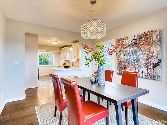 An Absolute GEM! Beautifully remodeled. Located in a quiet street & sits up high for privacy. Views of the Olympics mountains. New exterior/interior paint, new flooring, new electrical & plumbing works. New kitchen w/ quartz counter-tops, new cabinets, SS appliances. Sunny living rm & dining rm. Fully updated bathrooms. Bonus rm & laundry rm in the basement, plus shop. Huge backyard perfect for entertaining. Two sheds to store all your tools. One-car garage and plenty of off-street parking.