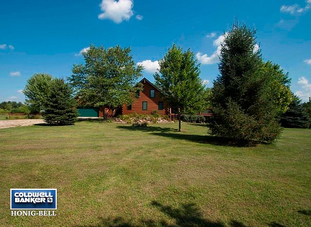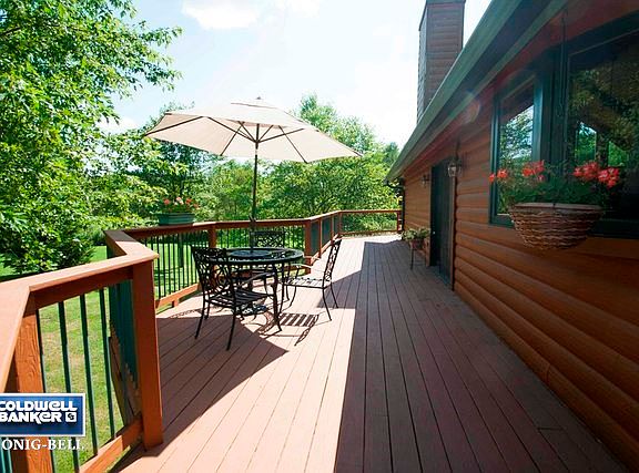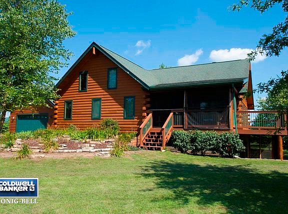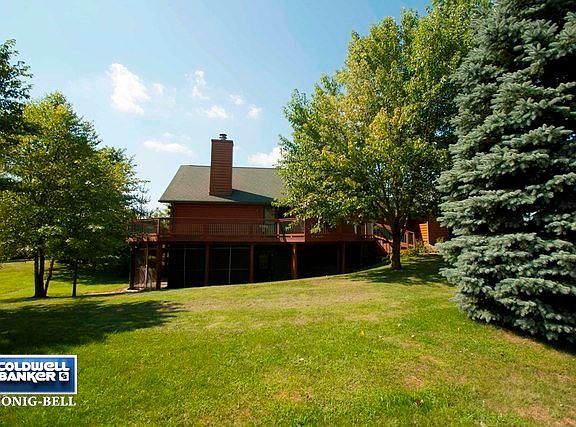 Country roads take me to this lovely log home. Open floor plan with soaring cathedral ceilings. Full unfinished basement with exterior access and lots of potential for expansion, plumbed for bathroom and wet bar. Finish it off with a family room and extra bedroom. You'll find peace and quiet here on the wrap-around deck and in front of the cozy stone fireplace. Screened front porch. Short sale.