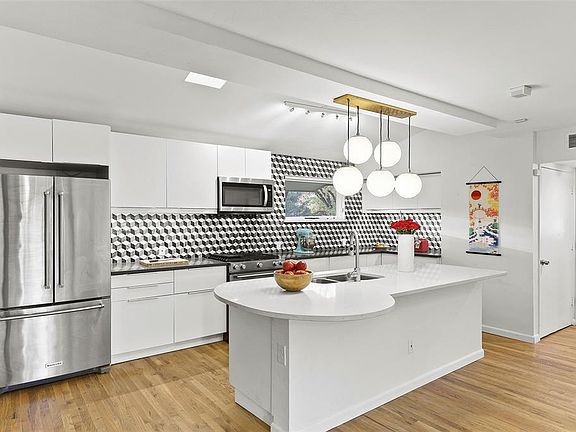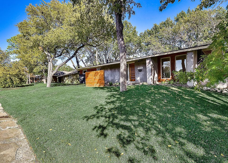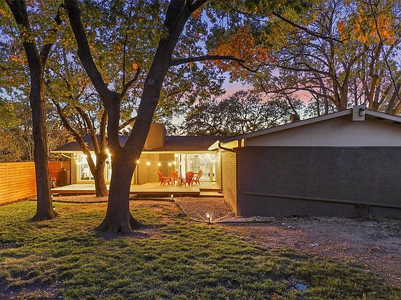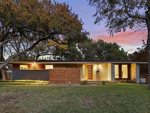 MODERN MID-CENTURY BEAUTY ON NEARLY A THIRD OF AN ACRE CUL-DE-SAC LOT IN DESIRABLE PARK FOREST AREA! Spacious layout w split floorplan. Features include real hardwood flooring, large windows, decorative lighting, vaulted ceilings & skylights. The gourmet kitchen features a beautiful backsplash, quartz counter, island, SS appliances. Primary ensuite has a sitting area, cozy fireplace, & patio access. Primary bathroom includes stylish tile & fixtures. Private backyard oasis boasts a large deck & mature trees. Location can't be beaten for this gorgeous home. Located near tons of shopping & DeGolyer Elementary! Buyer & Buyer Agent to verify all info including, but not limited to, room dimensions, features, schools.