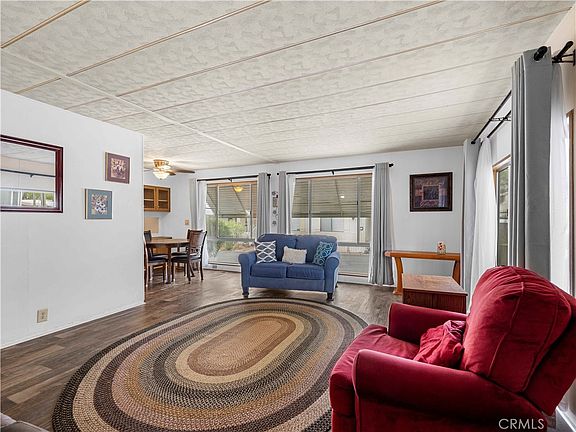 Tucked away in a welcoming 55+ Apple Valley community, this manufactured home is move-in ready and full of surprises. Step inside to a spacious great room with a formal dining area, fresh laminate flooring (installed just 6 months ago), and plenty of natural light. The kitchen offers not one but two pantry closets, and appliances are included — washer, dryer, fridge, and stove — so you can settle in with ease. The home features two generously sized bedrooms: one with an en suite bath, the other with a sitting area, dual closets, and access to a private deck with sweeping valley and desert views. Outside, you’ll find a fenced yard, two storage sheds (one with electricity and a foundation), and a deck perfect for enjoying those breezy desert evenings under the pine trees. With a new water heater, well-kept condition, and even some furniture included, this one is truly turn-key.