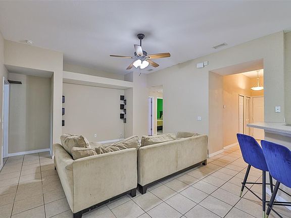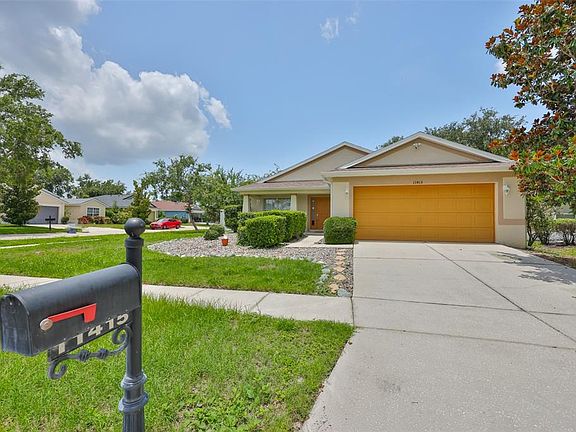 Welcome to this beautifully maintained 3-bedroom, 2-bathroom home situated on a pristine corner lot in the highly desirable Rivercrest community in Riverview. This split-bedroom floorplan offers both privacy and functionality, while soaring ceilings and abundant natural light create an open, airy feel throughout. The open kitchen features solid surface countertops, stainless steel appliances, and a breakfast bar that overlooks the spacious living and dining areas, perfect for everyday living and entertaining. A sliding glass door leads to a private, fully fenced backyard with a covered lanai and extended paver patio, ideal for relaxing or hosting guests. The primary suite features vaulted ceilings, a walk-in closet with built-in shelving, and a spa-like en suite bathroom with dual vanities, a soaking tub, and a separate shower. As a Rivercrest resident, you'll enjoy access to two community pools, a splash park, tennis and basketball courts, scenic walking trails, multiple playgrounds, and a vibrant recreation center. Conveniently located near top-rated schools, shopping, dining, I-75, I-4, and Downtown Tampa. Schedule your showing today!