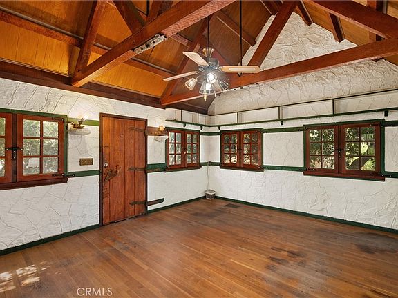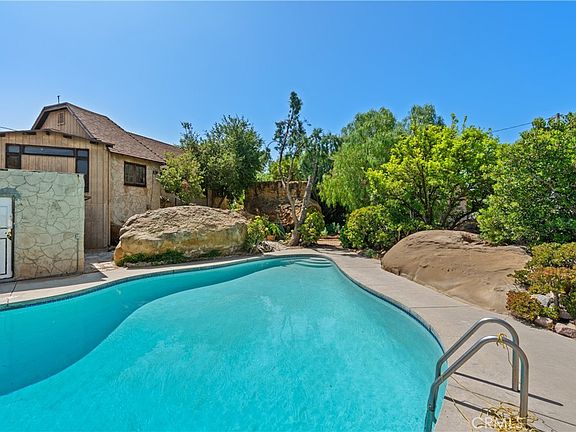 A true one of a kind! This charming cottage-like 2 bedroom 1 bath home is nestled off of Topanga Canyon in a small mountain like community neighborhood. Enter the home to a wood beamed living area with rustic/vintage hardware on the framed windows, doors and textured walls. The house flows with the same hardware, paneled ceilings and ceiling fans in many of the rooms. Enjoy over 900 sq ft of living space on a sprawling 12,000+ sq ft lot that includes a sparkling pool with solar heating, a storage shed, solar heating for the house, and a small custom built patio area that sits on the top of a large rock formation to enjoy this unforgettable outdoor experience! The backyard boasts many different tree and plant types. It's lush landscape amongst the rock formations with stone and brick walkways will have you spending many days outside enjoying the beautiful scenery. The house does need updating, so come prepared to envision your wildest dreams.