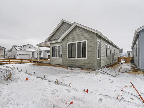 Beautiful single story home on a corner lot in the desirable Solstice Community by Shea Homes.  Solstice is surrounded by Chatfield State Park on 3 sides of the community and acreage parcels on the 4th side. This single-story 4 bedroom, 3.5 bath, 2-bay garage, features KitchenAid gas appliances and has a large covered back patio and wet bar in finished basement.  Design finishes include Luxury Plank COREtec Plus Premium Valor Oak flooring, tile floors at the bath and laundry rooms, MSI Calacatta Laza quartz kitchen counters with tile backsplash, Yorktowne Gilmore Eagle Rock cabinets, and 12x24 Tivoli Bianco stacked stone full height fireplace tile surround. The Mirabelle Metropolitan Districts provide various services to the property and in addition to the estimated taxes, a $40 per month operations fee is imposed.
