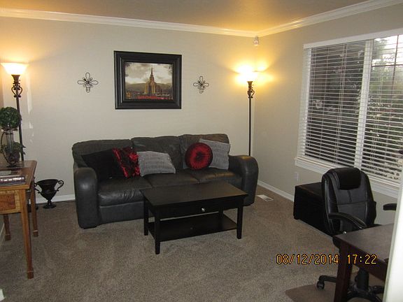 JUST REDUCED $15,000!! This house has it all! Well maintained with a brand new 30 year roof. Recently added hard wood floors and tile throughout on the main floor with vaulted ceilings, two living spaces and a fireplace. A bedroom on the main floor could be an office, craft room or play room, possible Master! Main floor washroom w/ separate mudroom & sink, storage space. Updated bathrooms, large storage closets, new paint and carpet upstairs. Basement is open w/ great media and entertainment area could be another bedroom or ? Large 3 car garage with work bench and lots of storage space/cabinets. RV parking with a separate driveway means your toys don't have to clutter up the front of your house. Big backyard with plenty of entertaining, play space, hot tub under a gazebo. Great neighborhood, schools and straight shot to I-15.