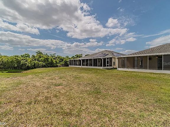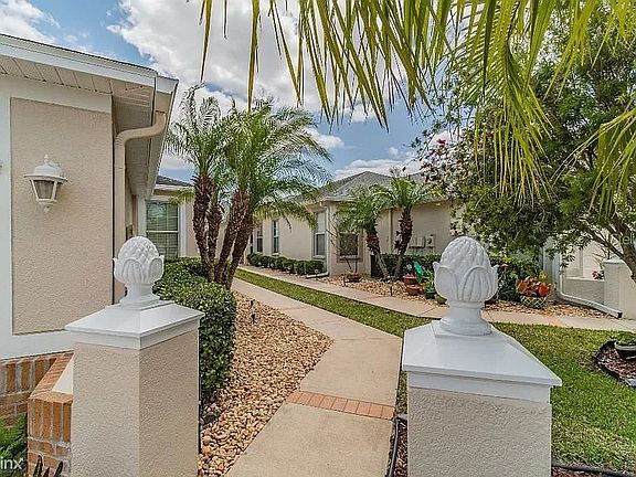 Welcome to this beautiful 3 bedroom, 2 bath villa located in a gated community within the highly sought after community of Panther Trace! As you enter you will be greeted by an open and spacious floor plan featuring a living/dining combo with luxury vinyl floors that open to large covered extended screened in Lanai that's perfect for entertaining guests. The breakfast area opens to kitchen with tiled floors with bay windows that offer 2" wood faux blinds and a beautiful chandelier. All bedrooms/office/den have newer carpet flooring that just have been professionally cleaned. The kitchen features granite countertops, breakfast bar, appliances are included with refrigerator, glass top oven, over the oven built in microwave, and a dishwasher. Also in the kitchens is a closet pantry with plenty of shelving for ample storage space. The master suite offers access to the lanai, tray ceiling, with his and her closets, one being a walk-in. The master bathroom has dual sinks and a spa-like walk-in large shower. The villa also boasts a screened lanai where you can enjoy your morning coffee or relax with a good book. The 2 car garage provides convenient parking and additional storage space. This gated community also has its own private salt water heated pool area to cool down and relax on those hot summer days. The community of Panther Trace includes a clubhouse, pool, and tennis/pickle ball courts, soccer fields, and basketball courts. You will love the maintenance-free lifestyle and the convenience of being close to shops, restaurants, and major highways. Adding to the features of the primary bedroom are the tray ceiling as well as a sitting area where after a long day you can relax with a nice book. The home features multiple upgrades including a new roof 2024, new garage door opener 2025 and full house water softener in 2025.
