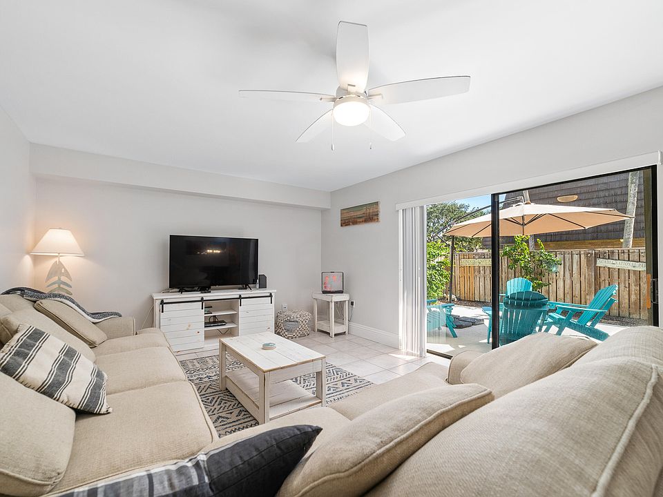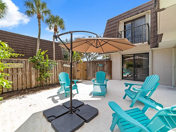 Welcome to this exceptional, fully-furnished and move-in-ready, two-bedroom, 2.5-bathroom townhouse in the sought-after Bluffs community. This stunning property has undergone a complete renovation with high-end designer touches throughout. The kitchen, bathrooms, and laundry areas have been updated with brand-new shaker cabinets and elegant quartz countertops, complemented by modern stainless steel appliances. There is also a brand new A/C just installed in March. The primary bathroom has been expanded to feature double sinks and a custom-designed shower. Both bedrooms offer ample space with large closets equipped with built-in organizers and stylish sliding barn doors. The entire space boasts sleek, skim-coated ceilings for a modern look. Convenience is key with central vacuum and accordion shutters. The large open courtyard is perfect for outdoor entertainment and relaxation. This townhouse is ideally situated on one of the most coveted streets in the Lake section, providing you with easy access to the beach, which is less than a mile away. You're just steps from the community pool, tennis courts, and more. The Bluffs is a highly desirable community in East Jupiter, known for its proximity to excellent restaurants and shops. Don't miss the opportunity to make this beautifully renovated townhouse your new home. Home is being sold fully furnished with all furniture and furnishings.