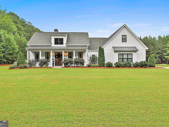 PRICE IMPROVEMENT! Don't sleep on this great price for an amazing house! This is the most special home in the Whitehorse community! Originally the Model home, it has all the bells and whistles. The Beeks plan sits on a 2 acre lot and is a 4 bedroom, 3 1/2 bath home. This farmhouse ranch plan offers a split bedroom plan on the main & a finished 4th bedroom/bonus room w/ private bath upstairs. Beautiful hardwoods in foyer, dining room, kitchen, primary bedroom and great room. Kitchen has beautiful custom soft close cabinetry, quartz countertops and high end tile backsplash. Large Primary Bedroom and Bathroom with tile surround shower, tile floors and quartz countertops. Large walk in pantry. Custom builtins in the living room and bedroom. A new wholehouse water filtration system. Upgraded Black Windows. Lots of storage with one pulldown attic and one walk in attic. Covered porch overlooks private, beautifully landscaped backyard. Front yard is equally as beautiful and both are fully irrigated. All of this located in wonderful Pike County! Don't miss your opportunity. This house is Fantastic!