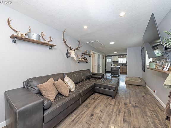 Discover this bright and well laid-out 2-bed, 1½-bath home: a sleek, stainless-appliance kitchen opens to sunlit living space, flowing seamlessly to a flat, spacious yard that’s perfect for gardening, play, or outdoor gatherings. A modern mini-split heat/AC system ensures year-round comfort while remaining cost efficient, and a 16×12×32 detached shop with pull-through barn-style front doors and a roll-up rear door offers workshop potential, RV/boat parking, or creative storage. With ample driveway space and no flood-plain risk, this home combines convenience, versatility, and peace of mind. Home is occupied, contact the agent if you have any questions. Seller is a licensed agent in the state of OR.