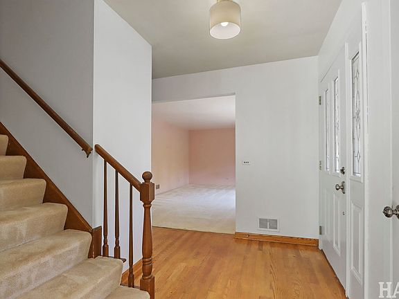 Spacious 4-Bedroom Colonial with Modern Updates and Timeless Charm! Welcome to this beautifully maintained center-entry colonial offering 4 bedrooms, 2.5 baths, and an inviting layout perfect for everyday living and entertaining. A large covered front porch welcomes you inside, where you'll find a bright foyer with an entry closet. The main level features a formal living room and a formal dining room with classic chair rail detailing. The heart of the home is the expansive family room, originally extended for extra square footage, and highlighted by a brick wood-burning fireplace and custom built-in bookcases. An updated eat-in kitchen offers granite countertops, hardwood floors, recessed lighting, and a pantry cabinet with sliding shelves. A large sliding door off the eating area leads to the cement patio and a gorgeous backyard retreat. Convenience continues with a first-floor laundry room, complete with hardwood floors, a utility sink, built-in storage, a roomy closet, and a side door with yard access. Upstairs, you'll find four generously sized bedrooms. The primary suite includes crown molding, a walk-in closet, and a private bath with ceramic tile and a walk-in shower. Two additional bedrooms feature walk-in closets, while the third offers a double closet. The large hall bath includes ceramic tile and a double vanity. The finished basement adds even more living space with a large recreation room, a dedicated storage/work room, and a utility room with a bonus storage bump-out and shelving-perfect for hobbies and organization. This home offers space, character, and thoughtful updates throughout-ready for you to make it your own! Award-winning District 34 and 225 schools, and easy access to Flick Park with its walking path, fishing pond, playground, pool, soccer fields, picnic shelter, and more. The home is being sold in a trust and respectively being sold as-is.