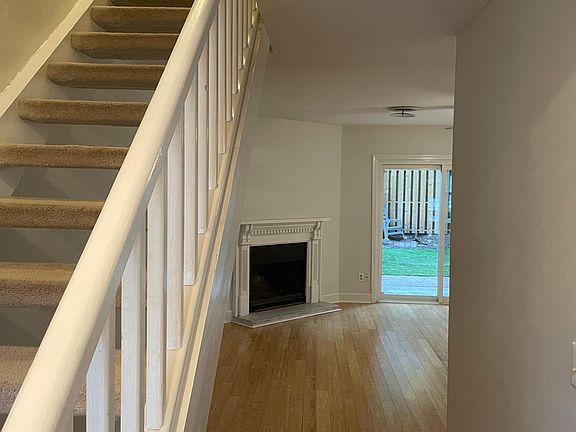 The downstairs features an open concept living space. From the entryway with a coat closet, you will step down into the living area. To your right is a hallway with a half bath and pantry before you enter the large, eat-in kitchen with quartz countertops and soft-close cabinetry. Appliances include fridge, stove, microwave, dishwasher, garbage disposal. Off the eat-in area of the kitchen is a laundry closet with washer/dryer and shelves for storage. The kitchen opens into the living space. The entire first floor has bamboo flooring, except for the entryway, bath and kitchen which are tiled. The peaceful, fenced backyard with patio and artificial turf offers a wonderful outdoor retreat. A 5x5ft storage room provides additional storage.