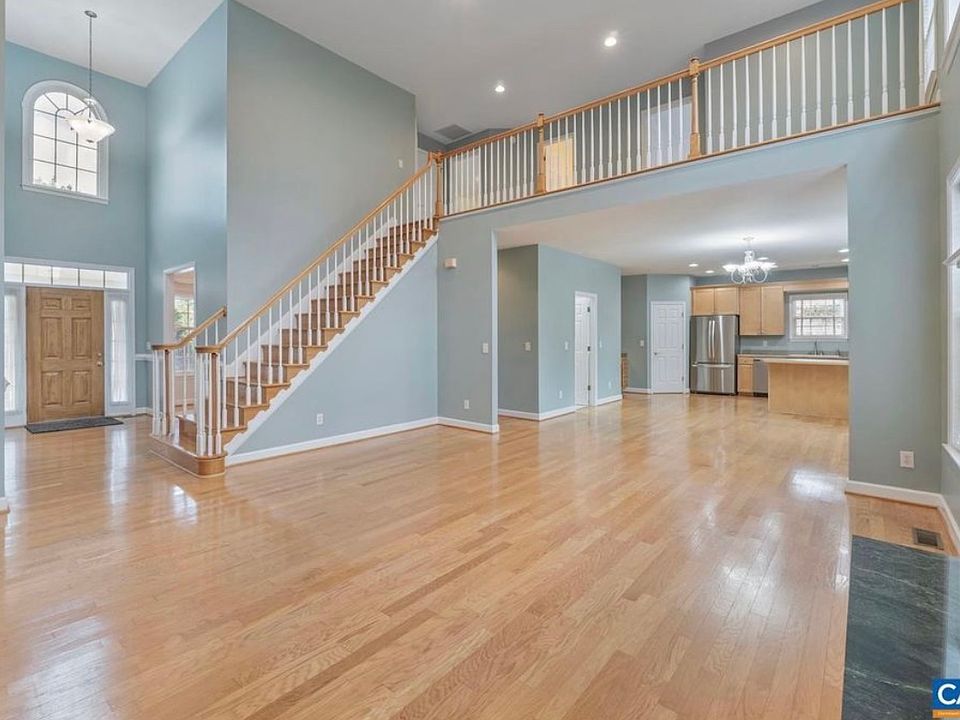 This charming Redfield home boasts a highly desirable open floor plan, featuring a convenient first-floor primary bedroom and a spacious home office for effortless single-level living. The impressive two-story great room, gleaming hardwood floors, and a large, kitchen seamlessly overlook the professionally landscaped backyard. Upstairs, discover three generous additional bedrooms and a versatile loft thoughtfully open to the great room. The side-load two-car garage offers ample extra storage. Enjoy peace of mind with an invisible dog fence, efficient irrigation system, and pre-positioned lightning rods. Community amenities include a refreshing pool and engaging playground. Ideally located, it's just five minutes from UVA, 5th Street Shopping Center, and I-64.
