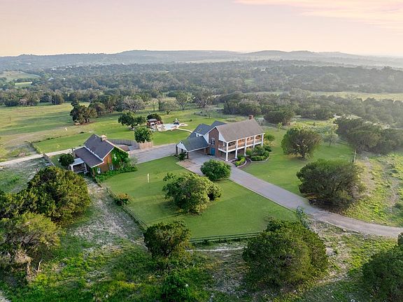 Amazing Hill Country Views! Unrestricted property, imagine the possibilities for venue, winery, B&B compound and more! This stunning 50-acre hilltop estate is just one mile off 290 and features a total of 8 bedrooms and 7.5 baths. The main house offers 4,000 sqft of quality craftsmanship, featuring 4 bedrooms, 3.5 baths with hardwood floors, cross beam ceilings, custom built in cabinetry, a grand entry staircase, four fireplaces and a resort style infinity edge pool and spa. The adjacent guest house boasts 2,400 sqft with 3 bedrooms and 2 baths with its own private pool, hot tub and patio. A large semi-finished barn also features an additional bedroom and two baths equipped with a chicken coop and horse stalls. This Fredericksburg Oasis is fully fenced and has a private entry gate along with multiple ponds. Embrace the tranquility and elegance of hilltop living. Owner financing would be considered. Deed restrictions expire 9/1/25. See video tour: https://youtu.be/bGfjQwFA-Cs
