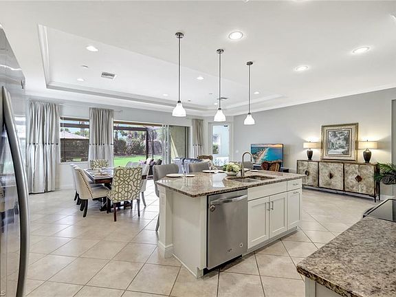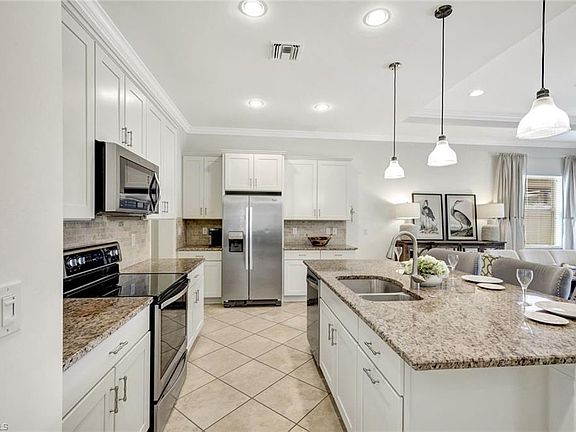 Embrace the ultimate resort-style lifestyle in this light and airy 2-bedroom + den, 2-bath retreat in the 55 & Better community of Prato at Pelican Preserve. Built with superior WCI quality and craftsmanship, this 1,822 sq. ft. home offers an open-concept design perfect for seasonal getaways or year-round luxury living. The elegant interior is complemented by oversized diagonal tile flooring, crown molding, and an abundance of natural light. The spacious kitchen boasts sleek cabinetry, a stylish low-profile island with a breakfast bar, pendant lighting, and brushed nickel appliances, creating the ideal space for cooking and entertaining. The primary suite is generously sized, offering a private oasis with an en-suite bath, while the guest bedroom and den provide flexible space for visitors or a home office. Both bathrooms are beautifully appointed with floor-to-ceiling tiled showers with decorative accents. Outdoor living is exceptional with the extended lanai features a picture frame screen enclosure, allowing for uninterrupted views of the tranquil wooded landscape—a peaceful retreat for morning coffee or evening relaxation. Experience the unparalleled amenities of Pelican Preserve, including tennis, pickleball, a massive fitness center, two outdoor pools, an indoor lap pool with an elevated walking track, baseball, basketball, a woodworking shop, pottery kiln, quilting room, billiards, a movie theater, an outdoor bar & grill, and a fine dining restaurant. Golf enthusiasts can enjoy the 27-hole course and practice facilities with membership. Conveniently located near Southwest Florida International Airport, Twins & Red Sox spring training stadiums, shopping, dining, and more, this home offers luxury, convenience, and an active lifestyle.