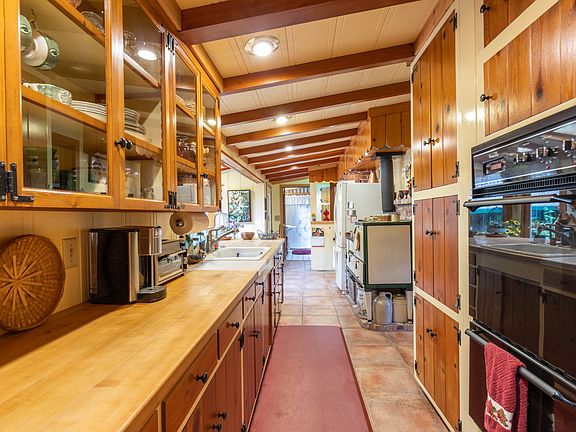 This lovely country home is located in the western hills of Sebastopol. The home sits on a 23 acre ranch. It is a 2 bedroom, 2.5 bath, with a library and a large beamed great room. The kitchen has atrium doors opening to a bright patio and an enormous completely fenced backyard with lots of flowers and trees. Both bedrooms have atrium doors which open to a large deck and the rest of the yard. Each bedroom has a private bathroom.