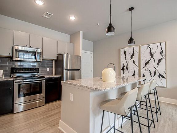 Each apartment home features an open floor plan with fully equipped kitchens, in-unit washer and dryer, spacious closets, and stylish finishes. Select homes also feature private patios or balconies for extra outdoor space.