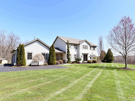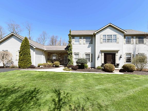 Consider this beautifully maintained Custom Built home on 2.6 acres. The home has been lived in by one owner since 2005. Enter the home to a spacious foyer with plenty of closet space. Hardwood floors throughout foyer, family room, kitchen, and dining room. Kitchen was remodeled in 2010 with granite tops and new appliances. Cozy room off of foyer could be used as a formal living room, office, or study. Generous family room opens up from the kitchen with gas fireplace and views of the wooded back yard. Off of the family room is a separate entrance to the home into the mudroom & laundry room with plenty of space and a full bathroom. The basement has a large finished space for a rec room and exercise space. Plenty of separate rooms for storage including shelves. The furnace and AC were replaced in 2015. The second floor has four bedrooms, three guest rooms with full bath and master suite with full bath and walk in closet. The garage is a spacious two car and the driveway was newly paved in 2009. The back patio can be accessed through the family room sliders and features two large areas to entertain w fire pit and arbor. Plenty of grassy space in the back yard surrounded by trees. Please view the virtual tour and video presentations of the home prior to setting up your private visit. We are taking precautions to sanitize the home, providing gloves and shoe covers for a safe visit.