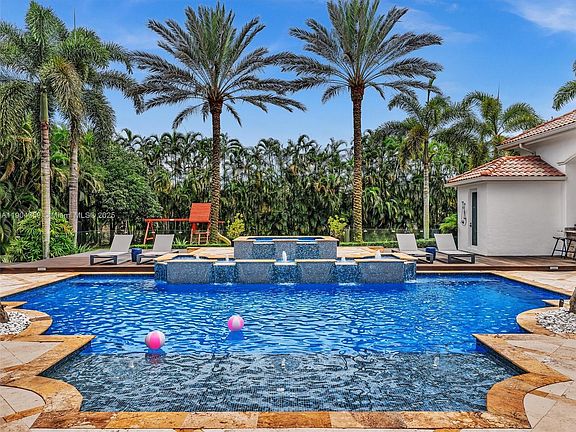 Behind a lush wall of Areca Palms, this 7-bedroom, 8.5-bath estate on 1.22 acres offers the rare blend of privacy, luxury, and space. With 6,842 sq ft under soaring 14-ft ceilings, every detail is built for elevated living. The chef’s kitchen features Sub-Zero refrigeration, Wolf appliances, and custom storage. A Control4 smart system, projector-equipped media room, and en-suite baths in every bedroom ensure effortless comfort. The primary suite boasts dual “hers” closets and a spa bath with two private toilet rooms and Toto Washlets. Outdoors, enjoy a heated pool and spa, koi pond, summer kitchen, guest house, and whole-home generator — all behind a gated entry. It's time to experience the pinnacle of Plantation Acres Living