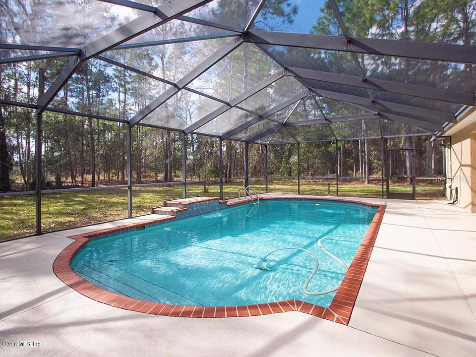 Nesteled on a 1.25 acre lightly treed parcel is a wonderfully private pool home with loads of important updates. New roof in 2014, HVAC 2016 w/ electronic filter, Water heater 2018, Culligan whole house water conditioning system at the well 2019. Newer appliances, granite counters, tile floors, pantry, laundry rm. Mstr w/pool access walkin shower, soaking tub, dual sinks.Large dining area overlooks the pool, 2 well sized guest bdrms, larger guest bathroom. Pristine Saltwater Solar heated caged pool with waterrfall, cover, safety fence, cleaning equipment, 2018 pool filter. Add another structure, wrkshop or garage This is a beautiful 1.25ac street to street lot! One of a kind -don't miss this one!