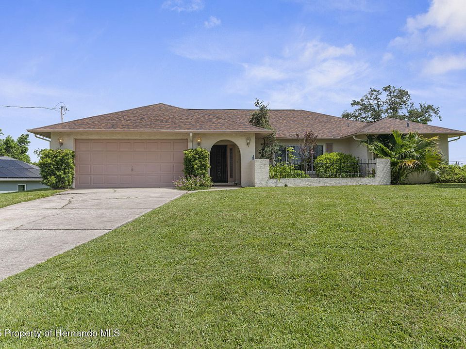 Welcome To 11421 Portsmouth Street - A Beautiful Home Nestled on a Spacious Corner Lot in the Heart of Spring Hill. This Charming 2 Bedroom, 2 Bathroom Residence Features a Desirable Split Floor Plan, Offering Both Comfort and Privacy Across 1,690 SqFt Of Living Space & 2,472 SqFt Under Roof. Step Inside To Vaulted Ceilings that Enhance the Open and Airy Feel of the Living Areas, Large Wall To Wall Front Window Floods the Space with Natural Light, and Multiple Sets of Glass Doors Lead Seamlessly to the Expansive Screened Lanai. The Bright Kitchen and Generous Living Room Overlook Your Private Outdoor Oasis—Complete with a Sparkling Pool that was Resurfaced In 2019. The Oversized Screened Lanai is Ideal For Relaxation Or Entertaining Guests Year-Round. Enjoy The Peace Of Mind That Comes with a New Roof Installed In 2019, and Appreciate The Cost-Saving Benefits of an Irrigation Well For Landscaping. The Property also Includes a 2 Car Garage, No HOA Or CDD Fees, and Sits On A Generous 0.33 Acre Lot In A Well-Established Neighborhood. Don't Miss This Rare Opportunity To Own A Pool Home That Perfectly Combines Comfort, Functionality, And Freedom. Call to Schedule a Showing Today