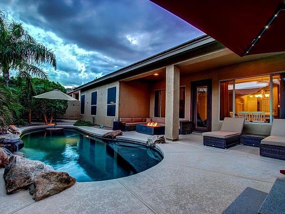 EXTRA-ORDINARY!! 4 BEDROOMS-2BATHS-3GARAGE and Gorgeous POOL! Private backyard oasis, covered patio, cool deck, waterfall -- relax poolside with mountain view - for the ultimate break in your day! Open floor plan with tile in main living/dining room areas and large chef's kitchen, granite countertops & island that open to the spacious great room for all to enjoy. Resort-style community of Estrella Mountain Ranch - hiking/biking, pools, boating, swimming, restaurants, golf, events and activities, magnificent views of the Estrella Mountains - so many choices! Home recently updated to include 20yr warranted high-efficiency water heater, and the addition of linen, laundry and bedroom closet space. Abundance of garage cabinets & sink add to the plusses+++ ! A must-see home - easy to show!!