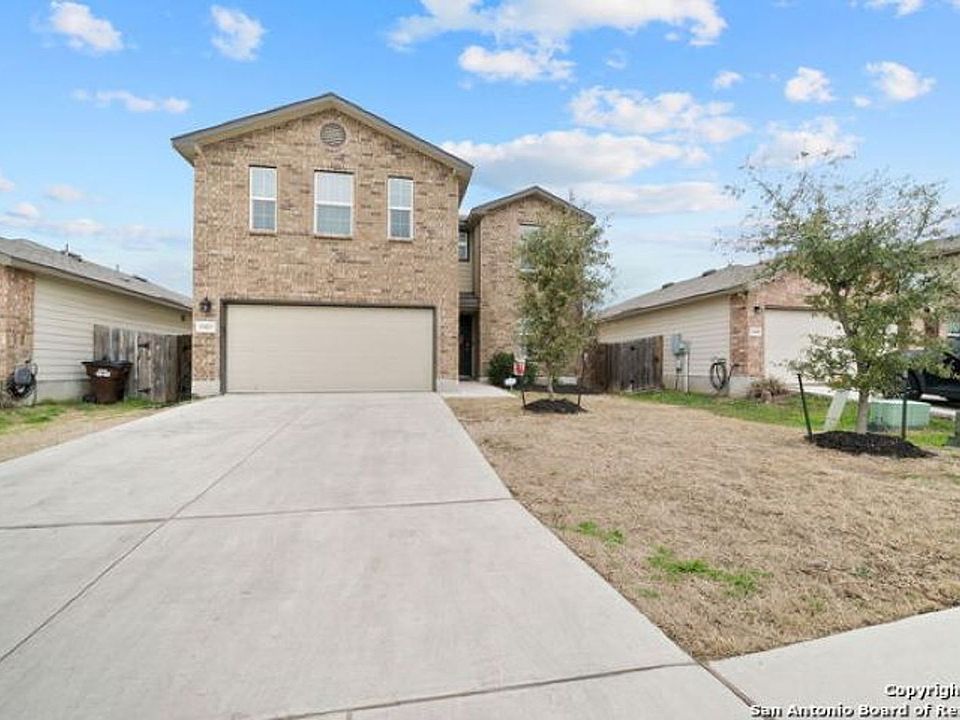Welcome to this stunning 5 bedroom, 3.5 bathroom home located in the desirable Laurel Vista subdivision. As you step inside, you're greeted by a versatile space perfect for an office or a second living room. The open kitchen area features elegant white cabinetry, stainless steel appliances, and a stylish tile backsplash, making it a chef's dream. The spacious master bedroom, located on the first floor, includes a walk-in closet and a full bathroom for your convenience. The remaining bedrooms are upstairs, each offering ample space and natural light. An additional room upstairs can be used as a game room, perfect for family fun. The large backyard is ideal for entertaining, complete with two patio slabs and a privacy fence. Community amenities include a pool, perfect for hot summer days. Additional features include a sprinkler system, water softener, two garage remotes, and a refrigerator. This home combines comfort, style, and convenience in a fantastic community.