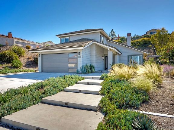 Discover the perfect blend of comfort, style, and functionality in this beautifully updated 4-bed, 3-bath, 2-story home located in the sought-after High Country West neighborhood of Rancho Bernardo. With 2,181 sq. ft. of living space and a bedroom and full bath on the main level, this home offers incredible flexibility for a guest suite, home office, gym or multi-generational living. An inviting entry welcomes you with vaulted ceilings and an open-concept design that fills the home with natural light. The living and dining rooms feature custom built-ins and flow effortlessly into the updated kitchen—complete with a large center island with pendant lighting & black stainless steel appliances including a double oven gas range. The adjacent breakfast/family area, accented by a cozy fireplace and sliding doors, provides direct access to the backyard for seamless indoor-outdoor living. Upstairs, the spacious primary suite offers a beautifully updated bath with double sink vanity, along with two additional bedrooms & another full bath. Enjoy resort-style outdoor living in your private backyard featuring a sparkling pool/spa, built-in BBQ with bar seating, a putting green, fire pit and low-maintenance landscaping. Additional highlights include owned solar panels, membership in the High Country West Club with access to community pools, spa, playground, meeting room and the following sports courts: tennis, pickleball, racquetball, basketball and volleyball—all within the award-winning Poway Unified School District. This home truly has it all—space, upgrades, and an unbeatable community lifestyle!