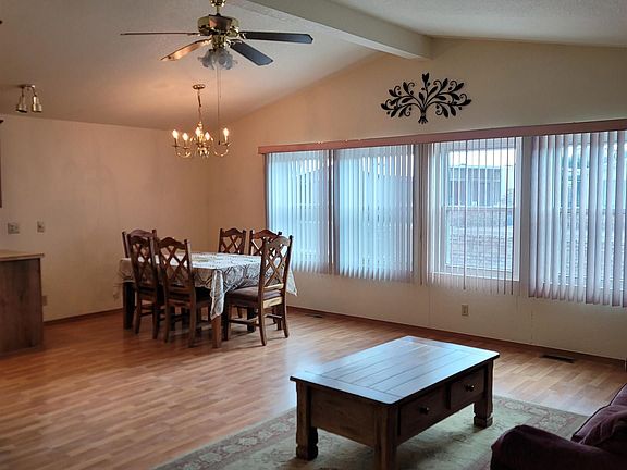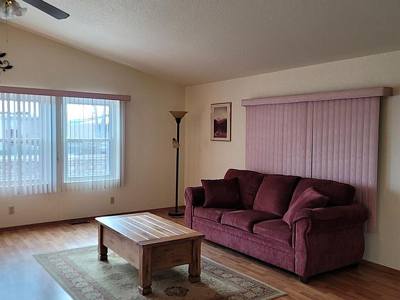 Large Yuma East 55+ Singlewide! Features: Enclosed Tiled AZ Room, Washer/Dryer, Wood Laminate flooring Main, Vaulted Ceilings, 2 Bedroom, 2 Baths, D/R & Living Room Taped & Textured, Water Softener, Long Carport, Shed, Newer A/C Unit, Pit Set.