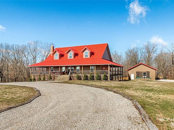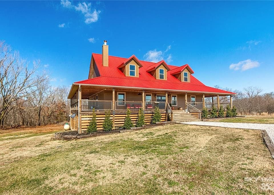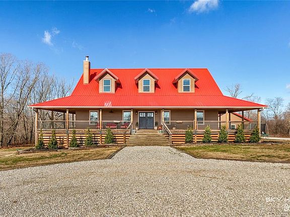 This gorgeous home with Porch that Wraps completely around the house, Metal Roof and 1080sf Shop sits on a large lot with over 6 Acres. The Open Floor Plan, 23ft Ceilings, and 100 Year Old Barn Wood Detailing showcase the Grandness, and Rustic Charm of this custom home. Two Large Living Areas and Extra Room used as 4th Bedroom. Stainless Steel appliances, Spavinaw Wood Burning Stove, 5 Ton Rheem Geo Thermo Heat Pump, Large Pantry, Walk-in Closets, and 1400sf Loft Area that overlooks your living room. 1080sf Shop: 220 Amp, 2 Bay, Built-In Shelving, 2nd Story Storage Area. Since property uses Well, Septic, Electric and Propane, the only utility expenses are Electric $160-220/month and Propane is $50 per Year to refill and $65/yr to rent tank! Walk or ride the trails that meander through the woods behind your house. Plenty of room to park an RV. Come out and see this Well-Built Home, Nestled on a Hill Top with Beautiful Views, Quiet Enjoyment and Close to Town.