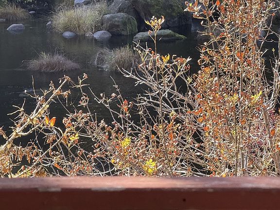 Riverfront getawayWell-established grapevine arborSweeping water viewsLarge entertainment deck