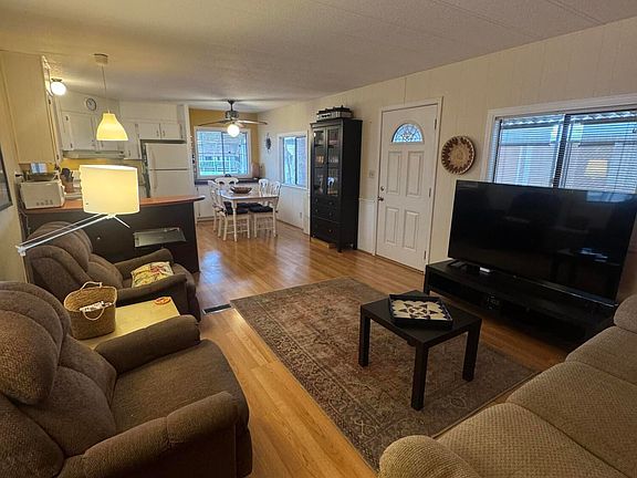 Beautifully appointed home in Coral Sands Mobile Home Park! Open concept kitchen with gas stove, appliances, and essentials included. Fully furnished inside AND out! Bathroom boasts granite countertop and walk in shower. Not one, but two patio areas to include generous covered deck along with two sheds. Washer and dryer included! Vibrant adult community offers heated pool, heated spa, pet friendly park, clubhouse with billiard, laundry facility, shuffle board, community events, gatherings, bingo, and so much more!