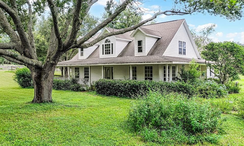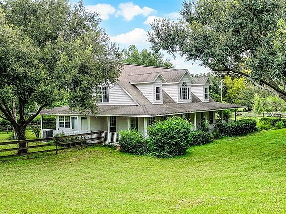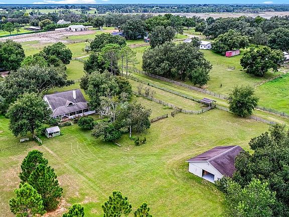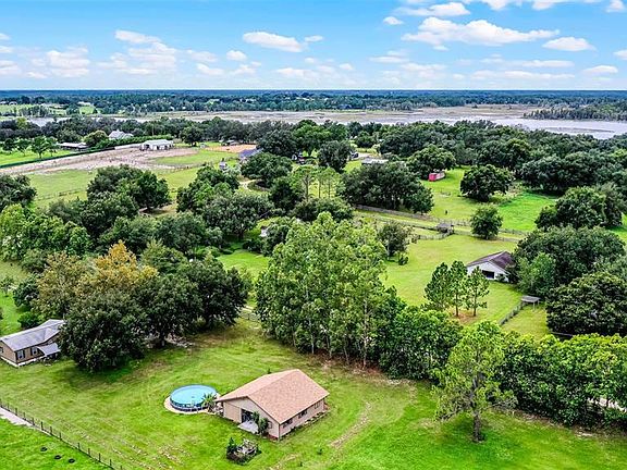 Welcome to your own private equestrian paradise, where rural tranquility meets modern convenience on this stunning 5-acre property. This gorgeous home w/its inviting wrap-around porch sits high and dry, offering the perfect blend of country living and accessibility to Central Florida's attractions. The heart of this property is the impressive 36-by-36-foot three-stall barn, complete with water and electric service, a dedicated tack room and office space, a convenient wash rack, and a center concrete aisle for functionality. Whether you're bringing your beloved horses to enjoy the multiple fenced and cross-fenced areas or simply appreciating these majestic animals from afar, this setup provides everything an equestrian enthusiast could desire. The home features a new roof installed in September 2025, ensuring years of worry-free protection for your investment. Inside the beautifully designed home, you'll discover a thoughtful layout that maximizes both comfort and views. The dramatic two-story cathedral ceiling in the living room creates an impressive sense of space while offering stunning vistas of the screened rear porch, pastures, and barn beyond. The primary bedroom conveniently on the main floor includes a spacious walk-in closet and a bath featuring a relaxing soaking tub and separate shower. Adjacent to the primary suite, an attached office, den, or potential nursery overlooks the rear yard and barn, providing the perfect space for work or relaxation while keeping an eye on your property. The home's recent upgrades ensure modern efficiency and peace of mind, with both air conditioning units and the water heater being only one year old. The new roof, while not yet reflected in current photos, adds significant value and protection to your investment. Beyond the exceptional facilities, this property offers an enchanting connection to nature that's increasingly rare. The same family of turkeys and majestic sandhill cranes return seasonally with their babies, creating delightful wildlife viewing opportunities, while hawks and owls provide fascinating birdwatching experiences. The expansive night skies, unmarred by city lights, offer spectacular stargazing. Despite feeling worlds away from the hustle and bustle, convenience remains paramount. You're just 20 minutes from grocery stores, shopping centers, theater and restaurants, ensuring easy access to daily necessities and entertainment. For broader adventures, Orlando International Airport, Disney World, Universal Studios, and all major Central Florida attractions are less than an hour away, along with extensive shopping at huge regional malls. This exceptional property offers the increasingly rare opportunity to own significant acreage with equestrian facilities while maintaining reasonable access to city amenities. Whether you're an experienced horse owner, someone dreaming of entering the equestrian world, or simply seeking a peaceful retreat with room to breathe, this property delivers on every front. The combination of practical facilities, natural beauty, wildlife viewing opportunities, and strategic location creates a unique offering that satisfies practical needs and dreams of rural living. Experience the magic of country living where every sunrise brings new possibilities and every sunset provides an ideal end to the day, all while knowing that modern conveniences and world-class attractions remain easily accessible whenever desired.