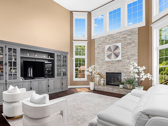 Welcome to this stunning 6-bedroom, 5-bathroom, finished basement, brick-front home with a 3-car garage, located on a quiet cul-de-sac in the sought-after Hunters Trail neighborhood within the Dunlap School District. This upscale home offers the perfect blend of comfort, elegance & functionality. Just steps from the Rock Island Trail, it provides beautiful natural views & easy outdoor access. Inside, the two-story great room is filled with natural light from floor-to-ceiling windows. The open-concept main floor flows into a spacious kitchen with a large island, granite countertops, stainless steel appliances, & ample cabinetry. Hardwood floors, new carpet, & designer finishes add warmth throughout. The main floor also includes a huge guest bedroom suite with a full bathroom. Upstairs, the primary suite features an en-suite bath & a generous walk-in closet. Three additional bedrooms & full bathrooms provide space & privacy for family & guests. The home also includes flexible living areas like a theater room, recreation room, formal dining room, & a home office. Step outside to a well-maintained yard with an irrigation system, a large deck, & a lighted pergola—perfect for relaxing or entertaining. With recent updates & a move-in ready layout, this home offers sophisticated indoor-outdoor living in a peaceful, nature-connected setting. 14-month Standard Home Warranty.