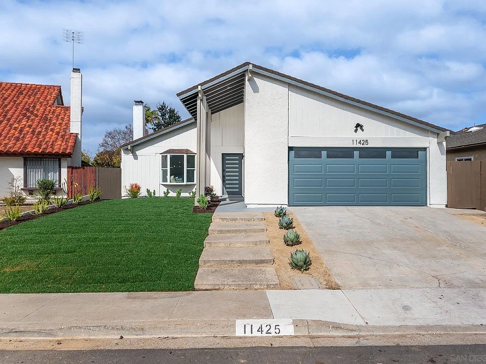 Discover this stunning Maverick Design x Wedgewood Homes collaboration—a completely reimagined 4-bedroom, 2-bath home in the heart of highly sought-after Mira Mesa. Step into a spacious living area with vaulted ceilings and a classic fireplace, creating the perfect blend of warmth and elegance. The ample chef’s kitchen is a true showstopper, featuring stainless appliances, a gas range for those who truly love to cook, and a huge waterfall island that seamlessly connects to a light-filled dining area or second living space. The primary suite is a private retreat with a spa-like bathroom, boasting a massive walk-in shower and double vanity. Designer touches elevate every corner, while modern comforts like AC ensure year-round enjoyment. Outside, a large backyard and grassy front yard provide plenty of space to play, relax, or entertain. Nestled on a quiet street in a prime, centrally located neighborhood, this home is minutes from parks, shopping, dining, and top schools. A rare find!