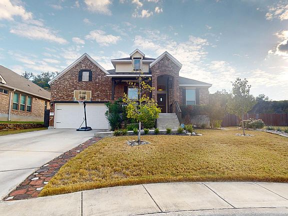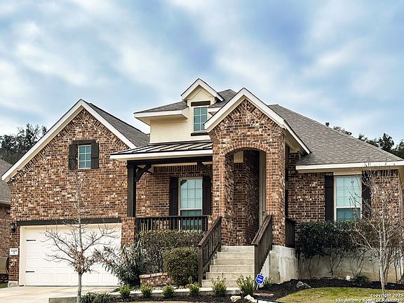 This beautifully maintained home has Four-bedrooms, Three and half-bathrooms, a dedicated Office and 3 car garage. A unique property located on a street knuckle has everything you need to work from home or enjoy a weekend lounging in the sun or hosting a backyard BBQ. The floor plan provides the open feel for entertainment while providing privacy for all four bedrooms and the office. Step out the door into your own backyard oasis. You will find a large, covered patio that leads up to the pool with plenty of flatwork for sunning, games and grilling. Walk over to the Turf Backyard and enjoy that green low maintenance yard all year round or grab a fresh peach off the tree in the back and relax in your hammock. This home keeps comfort high and energy bills low with its 8.37 KW Solar Array (27-310-Watt Mission solar Panels) and its 10 vinyl replacement windows. If that is not enough, take a walk to enjoy the neighborhood amenities which include a playground, volleyball, and BBQ grills. The Sanctuary is located just outside loop 1604 off Hwy 16. Convenient to shopping, restaurants, and entertainment but far enough out to enjoy the natural beauty of Hill country. This property is the total package. Come take a tour today!