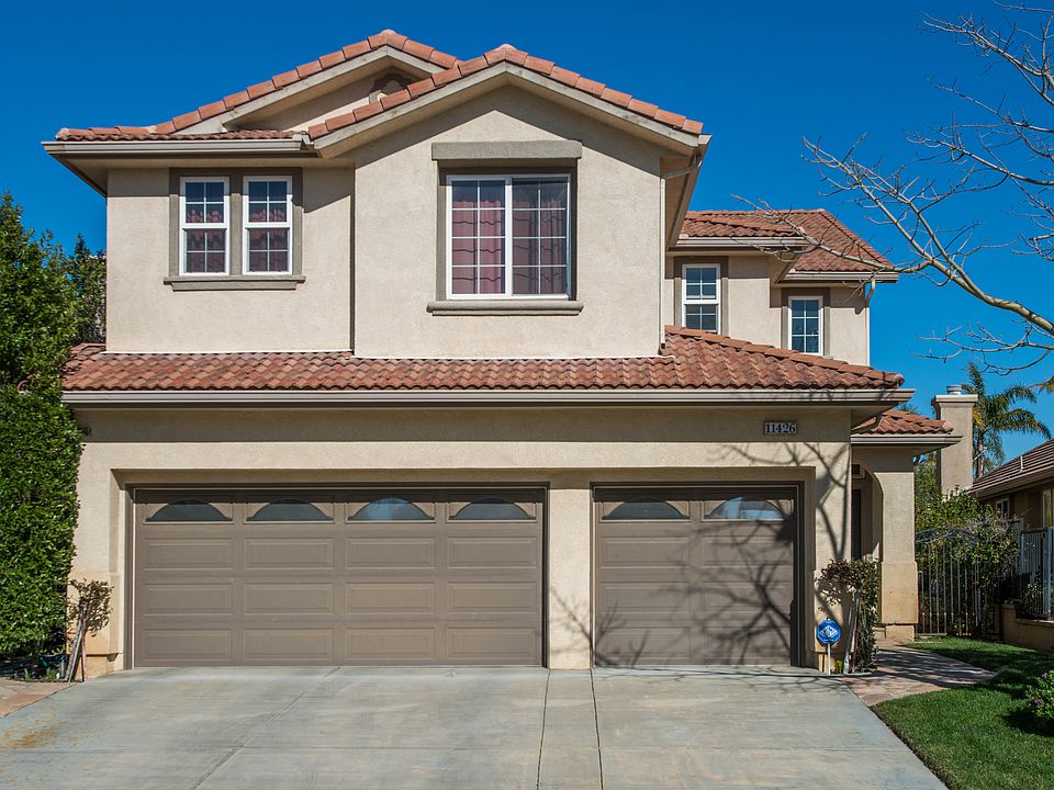 One of the Largest Lots & Models in the Sorrento/Meadows Gated Community. As you enter into this gorgeous home you are welcomed by a grand entrance with ceilings with plenty of natural light in the formal living room. Private formal dining for the special gatherings. The spacious kitchen with plenty of cabinet space, center island breakfast nook area and stainless steel appliance. The living room opens to the kitchen with a fireplace and with amazing views of the sizable backyard. Downstairs guest private en suite, can also be used as an office space. The second floor offers a grand master bedroom with views of the backyard and master bathroom with separate dual sinks, shower and jetted tub. As you walk to the hallway you encounter a bedroom en suite and on the south side of the home you encounter a bedroom that shares a dual sink full bathroom with a large Bonus room that can also be used as a Theater Room, Game Room or 5th Bedroom. The 24/7 Guarded community offers 2 pools & spas, 2 kids playgrounds and plenty of matured trees to enjoy a great walk or bike ride inside the community. Close to the new Vineyards at Porter Ranch Shopping Center, Grocery stores, restaurants and easy access to the 118 freeway.