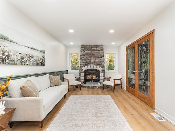 Welcome to this stunning 6 bed, 5 bath residence in the heart of Mokena. Crafted for luxury living, this modern sanctuary is situated on a sprawling .5 acre lot with breathtaking nature views offering an unparalleled sense of tranquility. Step inside to a contemporary abode with stylish finishes and a flexible, open floorplan designed for modern living. The stunning eat-in kitchen offers new cabinetry, sleek quartz counters and backsplash, massive island, ss appliances and new flooring that continues throughout the main level. The adjacent dining room flows seamlessly into a spacious living area and a cozy family room anchored by a stone fireplace. Enjoy the inviting three-seasons room, or step outside to a massive two-tiered deck overlooking a firepit area and private yard framed by mature landscaping. The main level features a luxurious primary suite with a spa-like full bath, a second bedroom, and another beautifully renovated full bath. Upstairs, discover a second expansive primary suite complete with a sitting area or office, four closets, a second laundry room, and an elegant full bath. Another large bedroom and a renovated full bath complete the upper level. The finished lower level offers even more living space with a generous recreation room, two additional bedrooms, a remodeled full bath, laundry room, and ample storage. All new cabinetry and vanities, updated flooring and lighting, fresh paint, new appliances, and newer roof and mechanicals. Schedule your private showing today for this rare gem that harmoniously blends modern design with serene natural beauty.