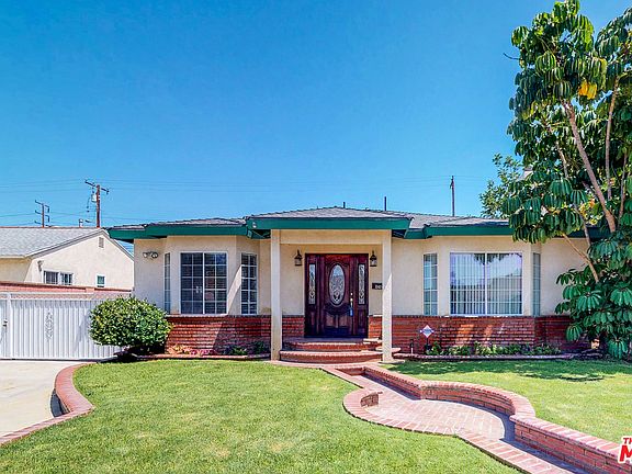 Charming single story home on a beautiful tree lined street. Front entry door with glass window panes. Formal dining room. Wood floors. Kitchen light and airy with bay window in front, oak cabinets with black appliances (included). Eat-in area, recessed lighting, corian counter top. Living room features recessed lighting & bay window. All bedrooms are very nice size. Master bedroom spacious with walk in closets. Ceiling fans in all bedrooms. Laundry room inside with gas hookups. Access garage through gated entrance off back alley, 3 car garage plus RV parking. Norwalk Square shopping around the corner, easy access to freeway. Great home in a Great area. A Must See!