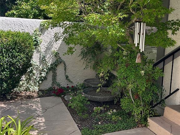 Gas fireplacePrivate gated courtyardCanyon view lotSpacious courtyardMature foliageTile flooringBright and welcoming