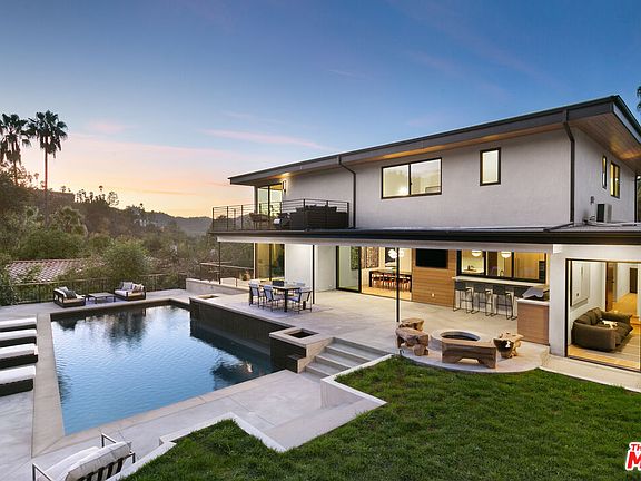 Step into a world of elevated living at this architectural gem nestled in the coveted Dona streets in the Studio City hills. With sweeping canyon views, this 6-bedroom, 7-bath contemporary estate blends bold design with serene luxury perfectly tailored for those who crave privacy, sophistication, and effortless indoor-outdoor flow. From the moment you enter, you're greeted by a dramatic glass atrium and soaring ceilings that flood the home with natural light. Every detail has been curated from the chef's kitchen with Wolf appliances, oversized Fleetwood sliders and custom walnut cabinetry to the expansive living spaces designed for both grand entertaining and intimate evenings. Upstairs, the primary suite is a sanctuary unto itself. Features include a spa like bathroom with vast two person marble shower, dual walk-in closets, and a private terrace overlooking the hills. Downstairs, a versatile layout offers guest suites, a media lounge, and seamless access to the resort-style pool, fire pit, and outdoor kitchen. Smart home features, designer finishes, and a rare combination of scale and warmth make this property a standout in today's market. Less than 5 minutes to the heart of Studio City, family life & community is exemplified with a bustling Sunday Farmers Market, numerous parks and a top tier school district. 10 minutes to WEHO & 15 to Beverly Hills. So whether you're hosting under the stars or enjoying quiet mornings with canyon breezes, 11428 Dona Lola Drive invites you to live beautifully.
